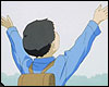 : день. гул проводов. Лэйн идет в школу по своему обычному маршруту. вдруг она замечает вдали на улице стоящего мальчика. мальчик стоит к ней спиной, раскинув руки вверх и смотря в небо, как будто приветствуя кого-то в небесах. Лэйн поднимает голову и смотрит вверх, но видит лишь ЛЭП на горизонте, а когда она опускает взгляд обратно, мальчика уже нет