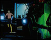 : машинный шум в комнате нарастает, стрелки приборов начинают сильнее дрожать. Лэйн: "вы сделаете все, что угодно, если можете это сделать, и если это забавно для вас!" напряжение машин растет, Лэйн громко смеется: "если так, то вы - всего лишь кучка неудачников! ну, что же вы молчите?! неужели никто из вас мне не ответит?" Лэйн откидывается в кресле и смотрит вверх. вдруг она замечает две красные точки, бродящие по потолку. выглянув, она видит тех двух мужчин в черном, рассматривающих ее через свои лазерные устройства