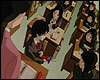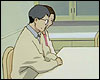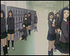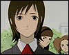 : сцена расплывается, мы видим Лэйн, сидящую за партой и держащуюся рукой за голову. тяжело дыша, она закрывает все программы на своем наладоннике и выключает его. тишина, висящая в классе, привлекает ее внимание и она оглядывается. весь класс, все ученики и даже учительница, не отрываясь, смотрят на нее с неприязнью. тихое жужжание раздается из-под парты, Лэйн вздрагивает и достает наладонник. на нем сообщение: "Лэйн подглядывает". весь класс пристально смотрит на Лэйн