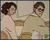 : Лэйн открывает дверь в большую комнату и входит. беззвучно работает телевизор, за кухонным столом молча сидят, не двигаясь, Ясуо и Михо. Лэйн тихо проходит мимо них к холодильнику, бросает взгляд на родителей - те не двигаются и вообще не реагируют на ее присутствие. Лэйн берет стакан и наливает себе чего-то попить. тихо произносит: "мама? папа? я.." оборачивается - родители сидят неподвижно