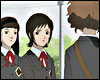 : неподалёку стоит тот самый учитель, он болтает с охранником. Арису смотрит на него, и подруги это замечают. Джури: "о да, этот учитель такой красавчик!" Рейка: "ага! но говорят, что его где-то видели с восьмиклассницей!" Джури: "что? вот это да! это же нехорошо!" Арису в полном расстройстве: "слушайте... я.. насчёт этого учителя.. и меня... я.." Рейка: "что? у тебя с ним какие-то отношения?!" Джури: "ты что, влюблена в него?" Рейка со смехом: "извини, но ты опоздала!" Джури подхватывает: "да! у него уже есть подруга!" Рейка: "да, ты точно сегодня какая-то странная..."
