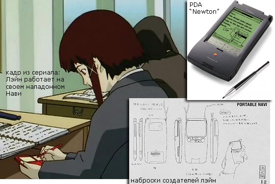 в школе Лэйн пользуется маленьким наладонником Нави. handyNavi, как и все Нави, способен подключаться к Сети