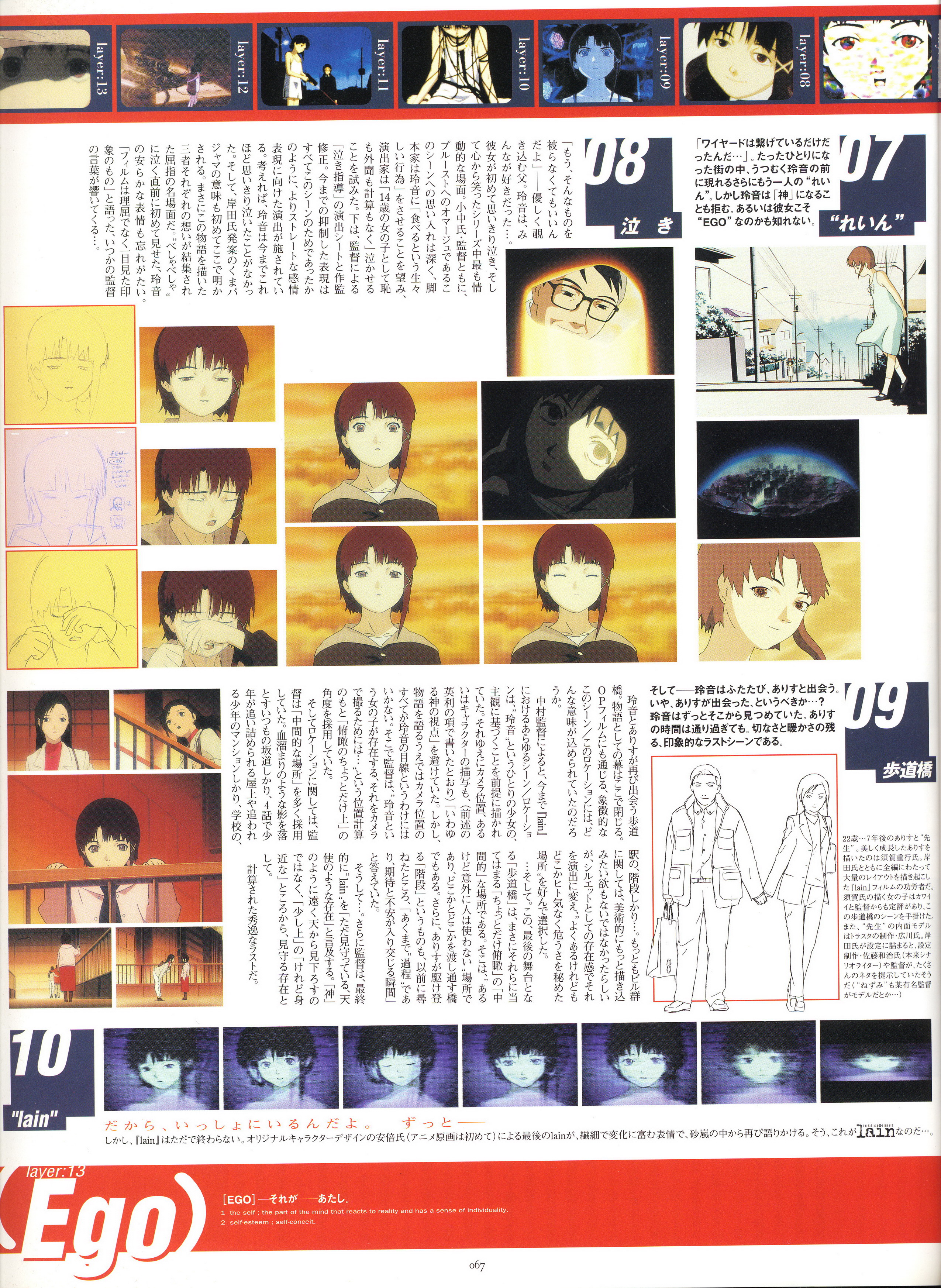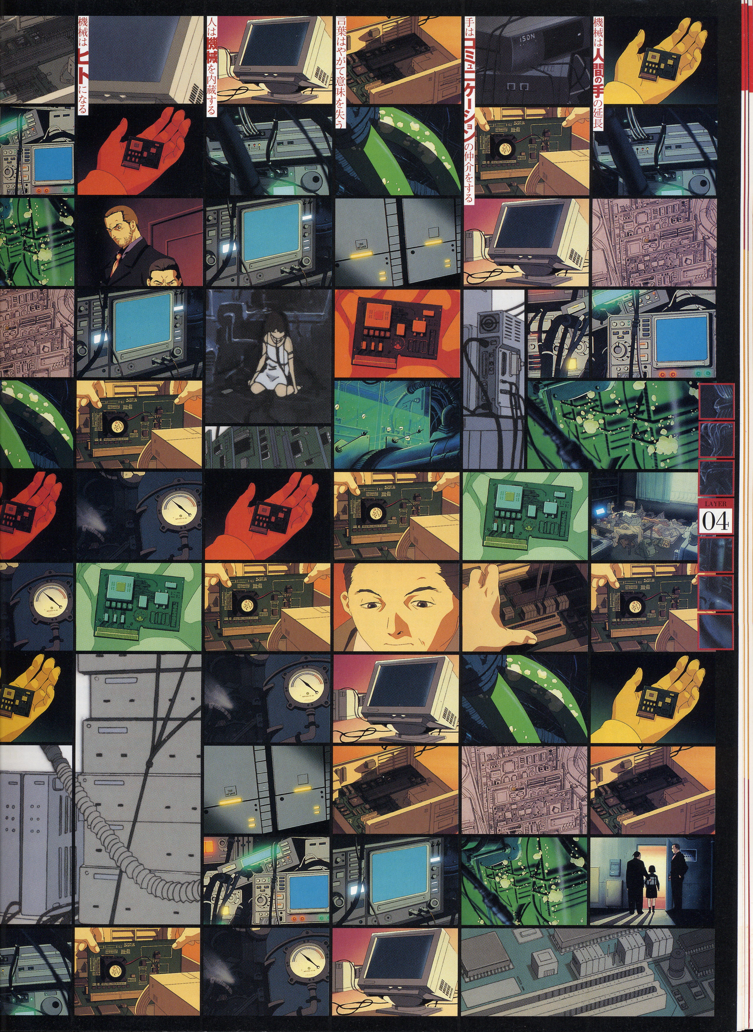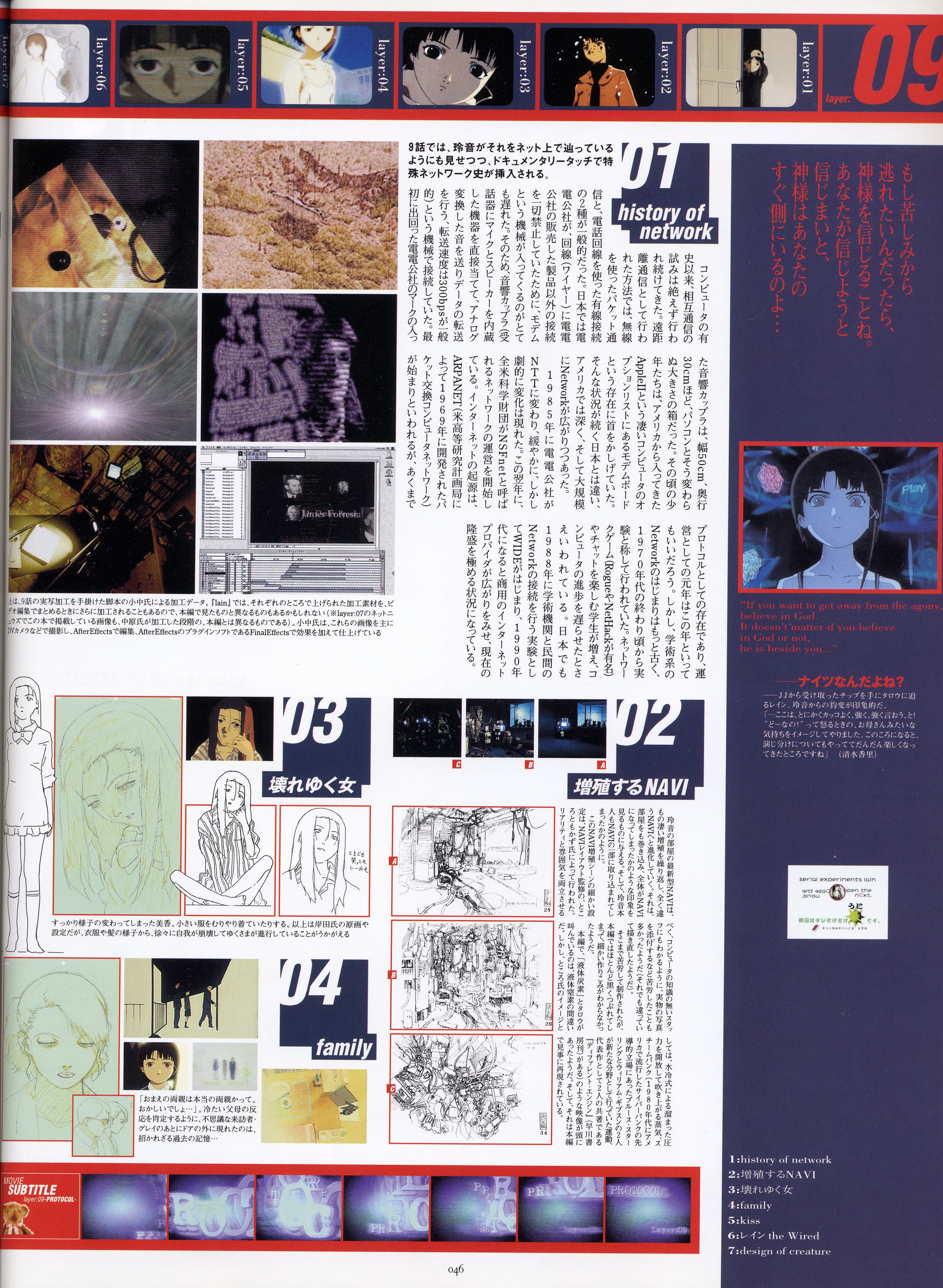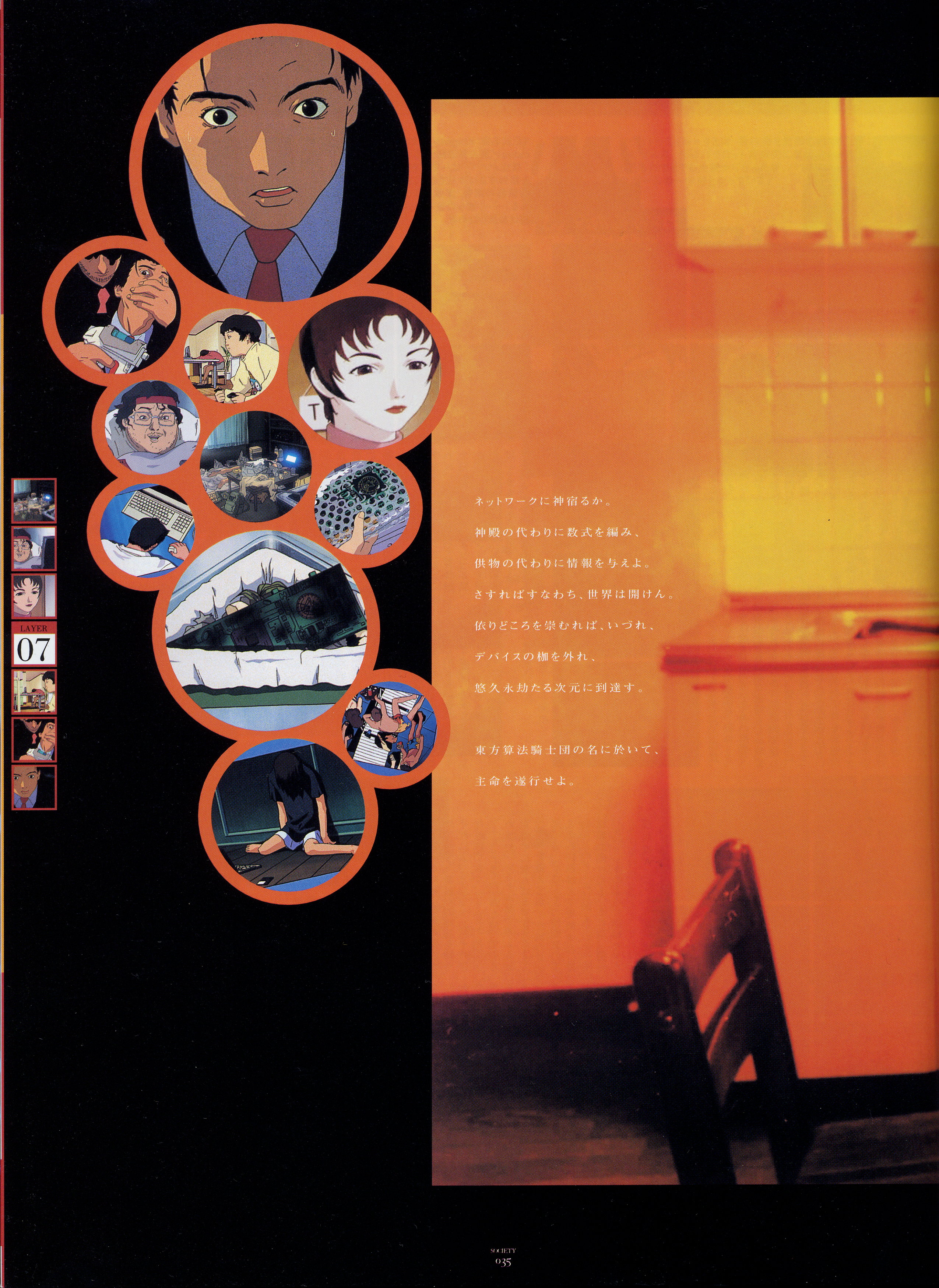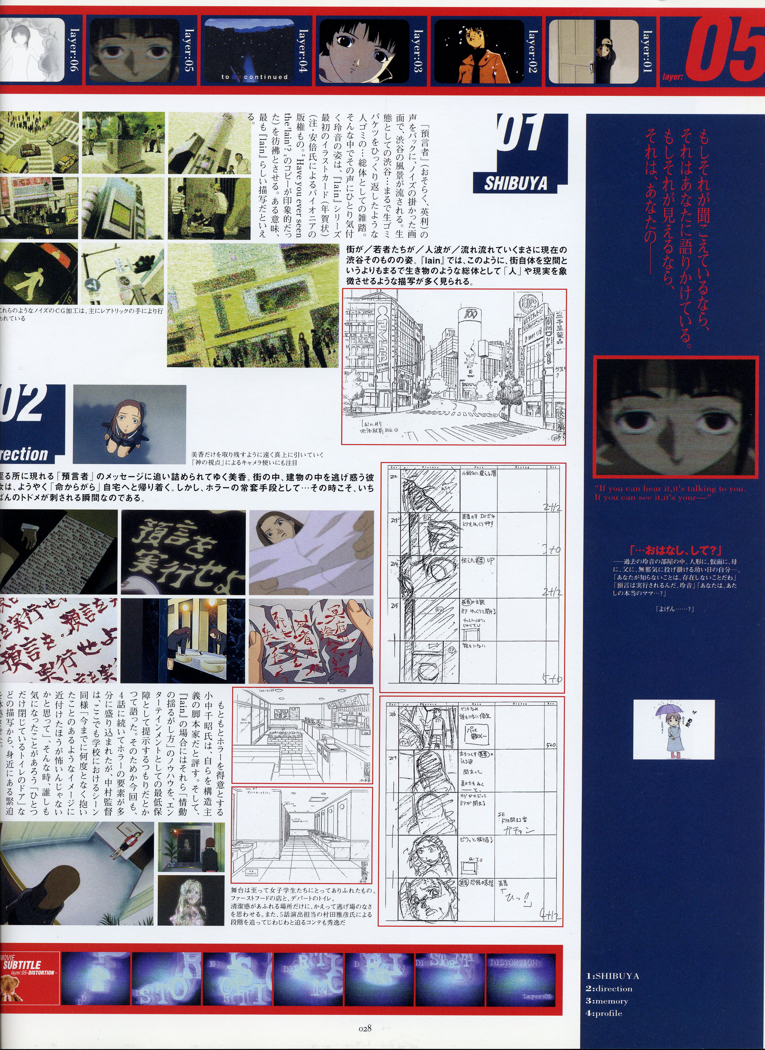 : после выпуска артбука Lain Illustrations (переиздание omnipresence in Wired) самым редким для поклонников стало издание Visual Experiments Lain, которое до сих пор отсутствовало даже в электронном виде в сети. Ко мне в руки чудом попал этот замечательный артбук (хвала японским букинистам на eBay =)) и я не преминул возможностью оставить его в истории. Книга содержит уйму текста на японском (к своему горю, я ничего не понимаю из того, что там написано), кучу карандашных набросков, зарисовок, и прочего дополнительного арта, использовавшегося как рабочий материал при создании сериала. Здесь выложен абсолютно полный скан артбука в 300 dpi, сканировал сам, единственный минус - артбук больше стандартных A4, поэтому края не влезли.