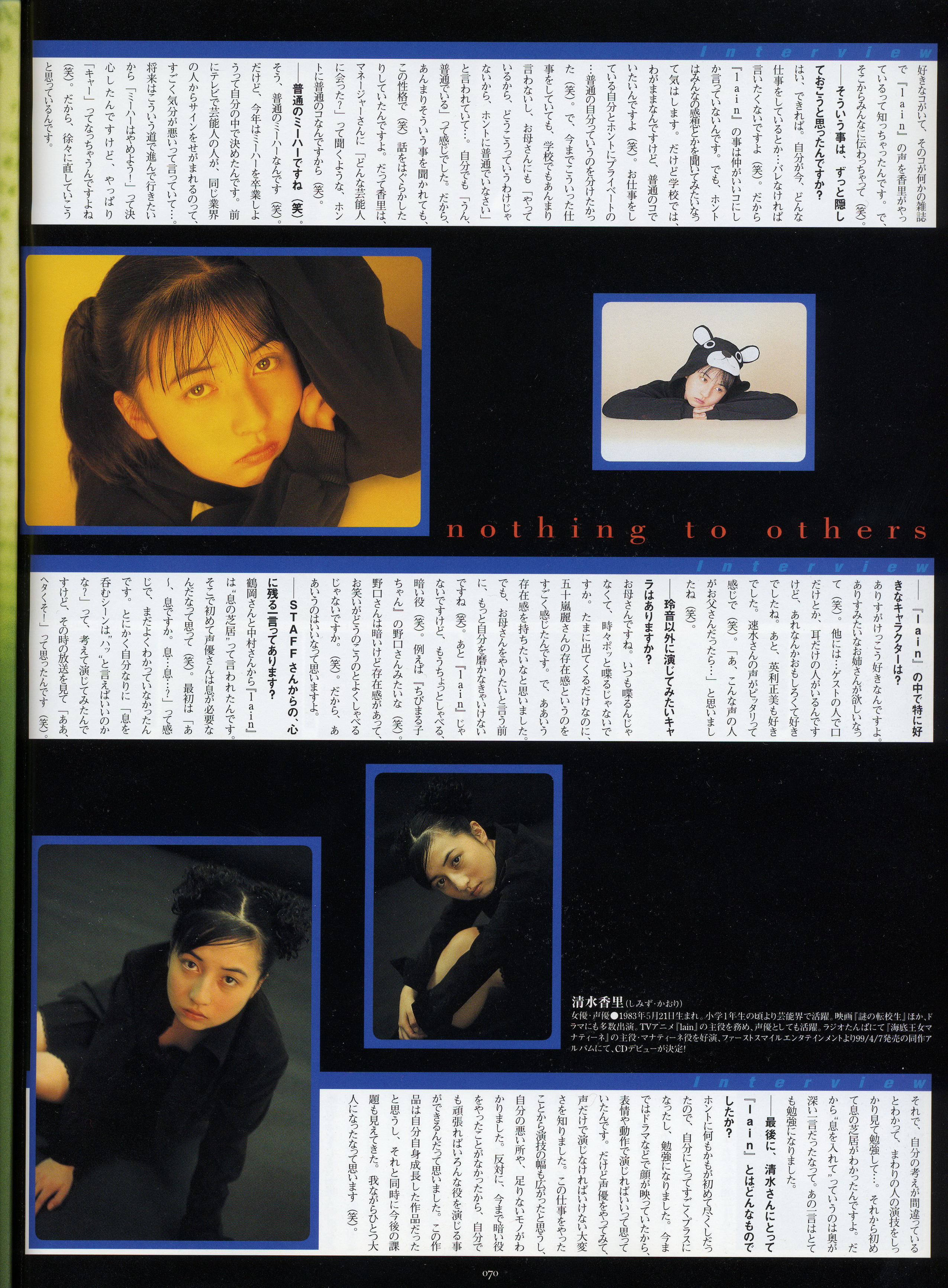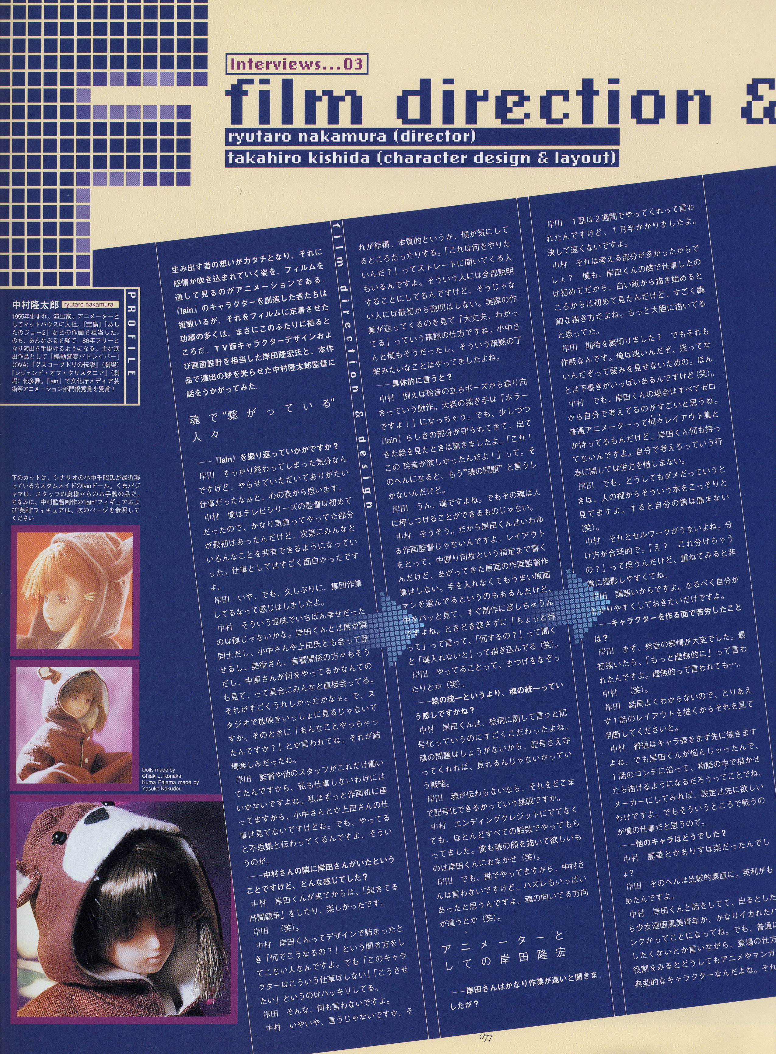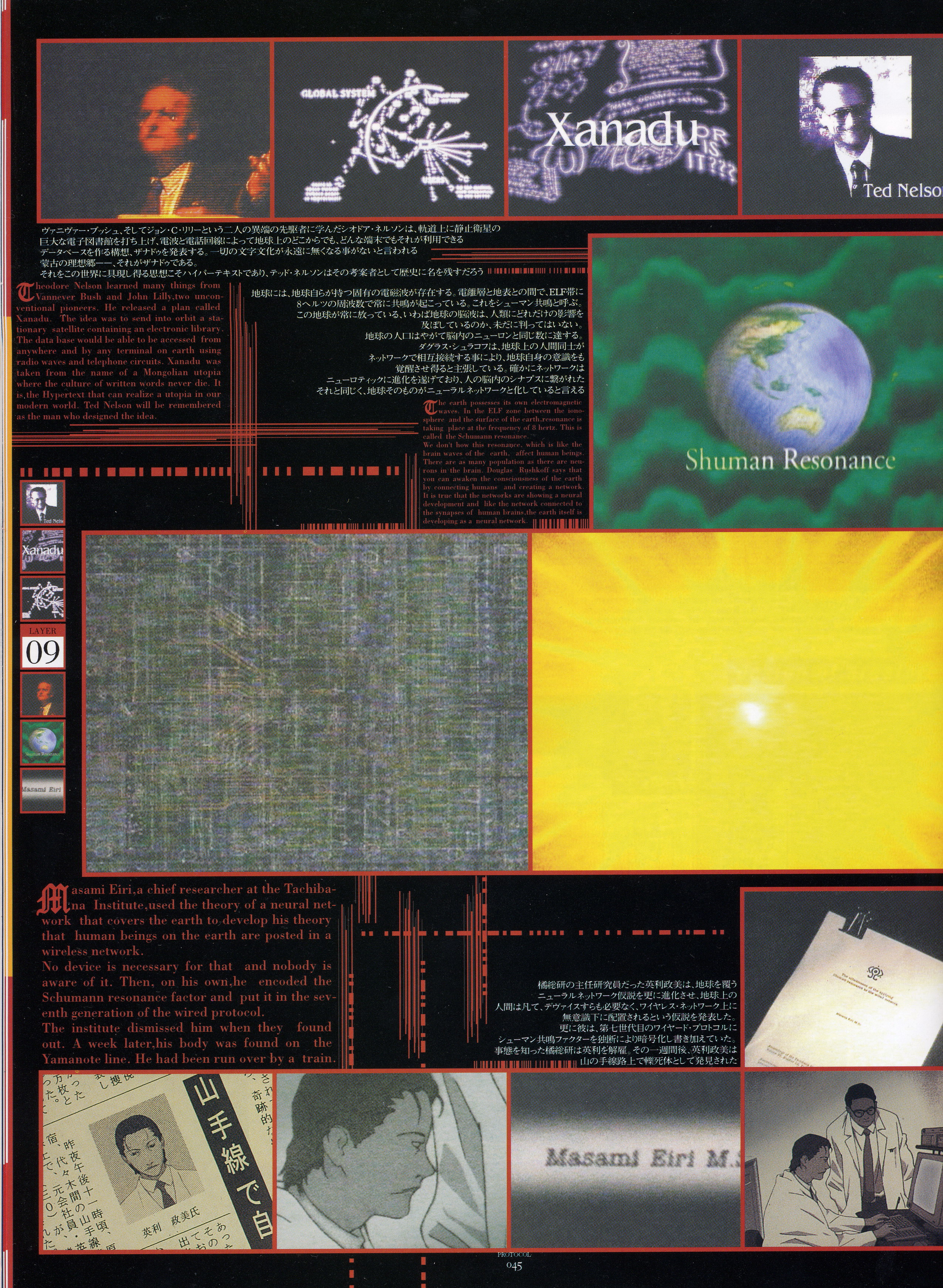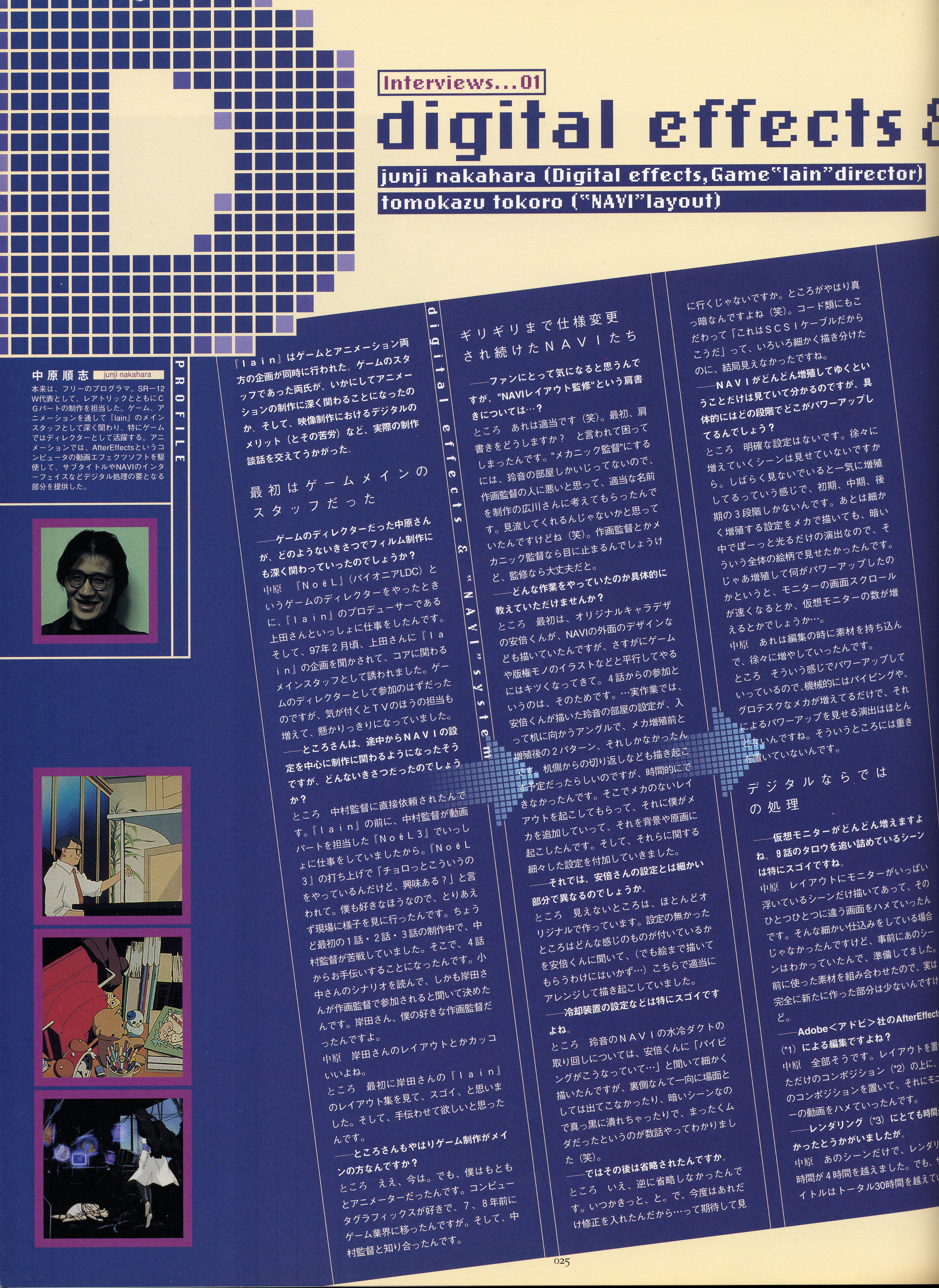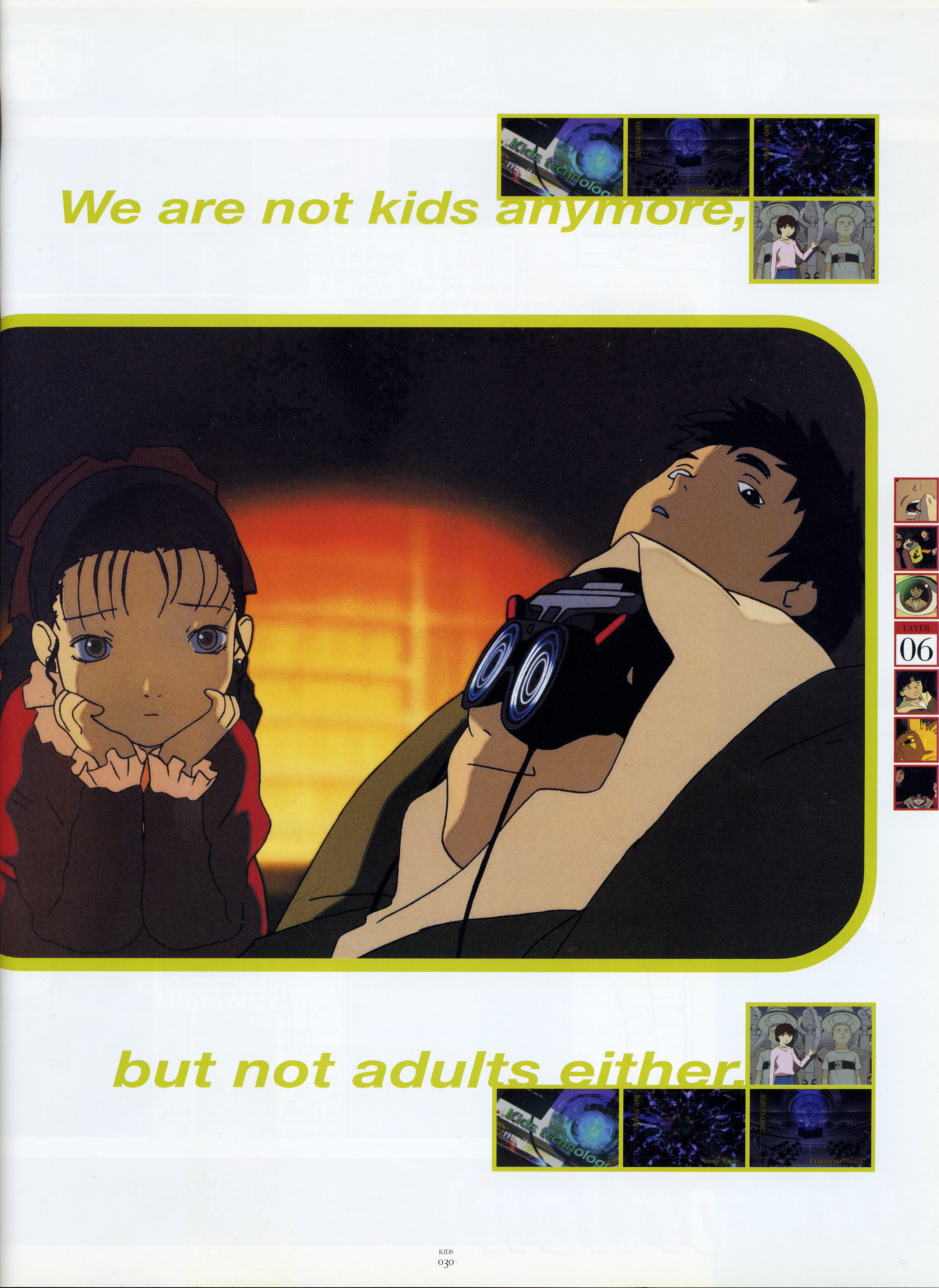 : после выпуска артбука Lain Illustrations (переиздание omnipresence in Wired) самым редким для поклонников стало издание Visual Experiments Lain, которое до сих пор отсутствовало даже в электронном виде в сети. Ко мне в руки чудом попал этот замечательный артбук (хвала японским букинистам на eBay =)) и я не преминул возможностью оставить его в истории. Книга содержит уйму текста на японском (к своему горю, я ничего не понимаю из того, что там написано), кучу карандашных набросков, зарисовок, и прочего дополнительного арта, использовавшегося как рабочий материал при создании сериала. Здесь выложен абсолютно полный скан артбука в 300 dpi, сканировал сам, единственный минус - артбук больше стандартных A4, поэтому края не влезли.